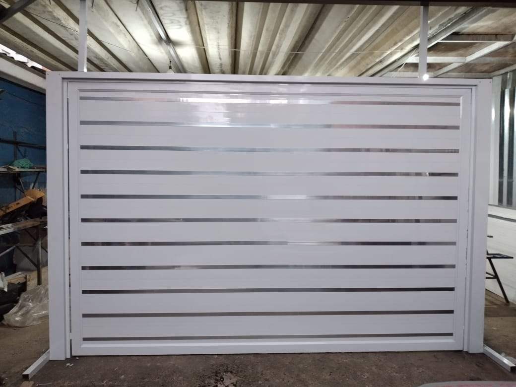Portão, grades em aluminío branco.